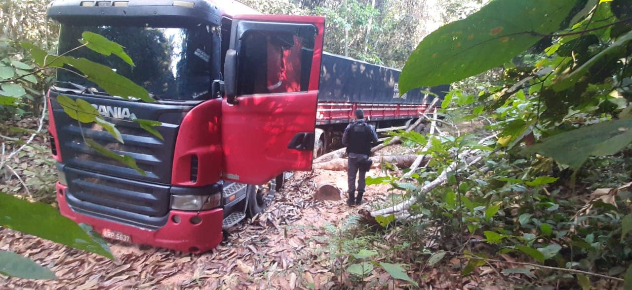 Em Juara ainda no dia 09 de julho enquanto as guarnições da Polícia Militar realizavam o projeto de Policiamento Rural,receberam informações de uma possível carreta abandonada, localizaram o veículo que fora produto de roubo no dia 03/07/2020.