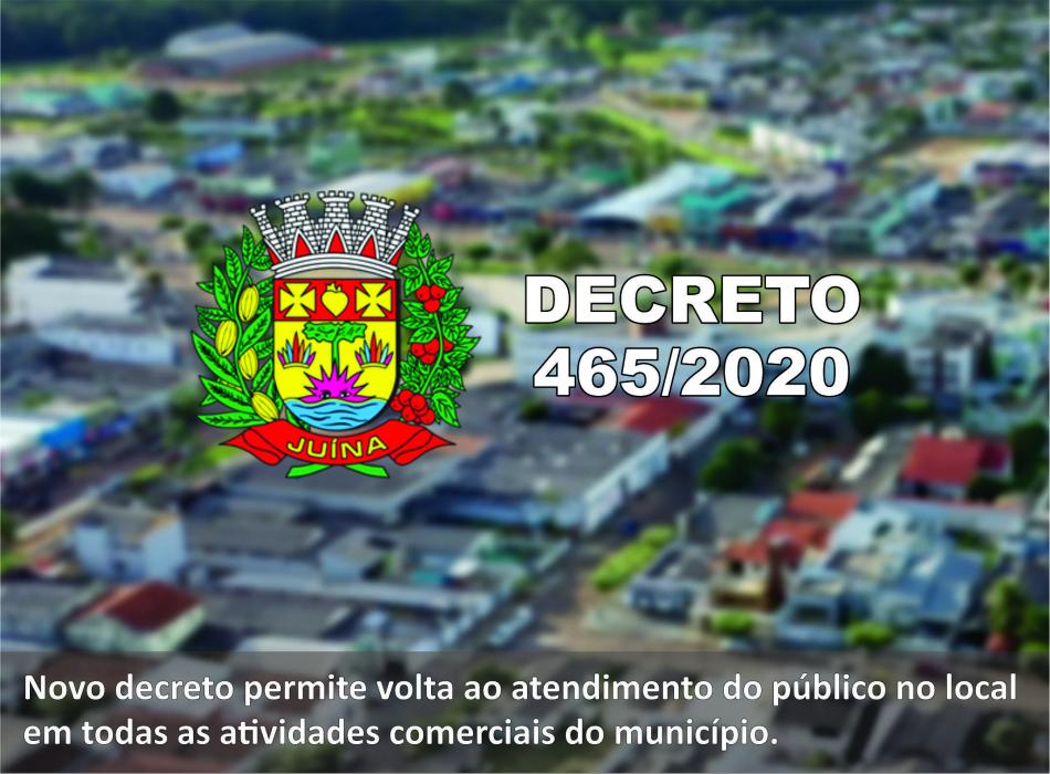 Publicado no domingo (26), o novo decreto, 465/2020, autoriza o funcionamento, de portas abertas e com atendimento ao consumidor no local, os estabelecimentos comerciais, de serviços e atividades radicados no município de Juína, inclusive as atividades não essenciais privadas, observadas as normas e critérios estabelecidos no decreto.
