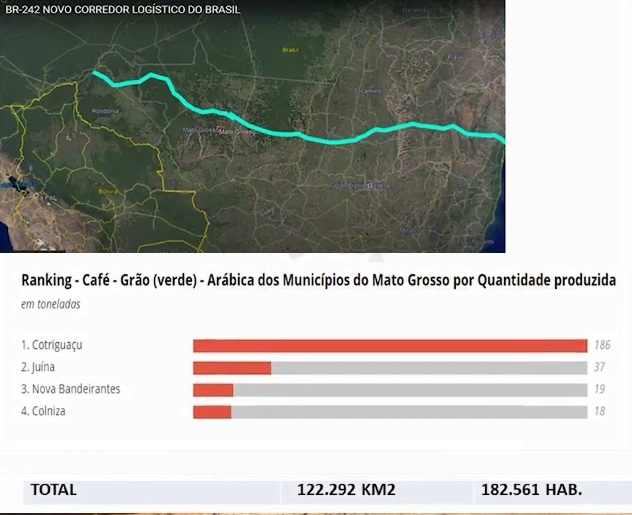 Com um novo projeto, as pretensões de ampliar a rodovia estão em discussão. A BR 242 deixaria o Vale Do Juruena e Vale Do Arinos fora dessa rota sobre pena de excluir uma das regiões mais produtoras ao longo dessa rodovia dentro do estado.