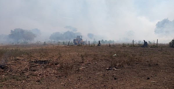 A estimativa de 40 mil hectares atingidos é do Corpo de Bombeiros, que está com 18 militares divididos em cinco equipes na região. Eles combatem o incêndio diretamente com equipamentos e com aceiros.