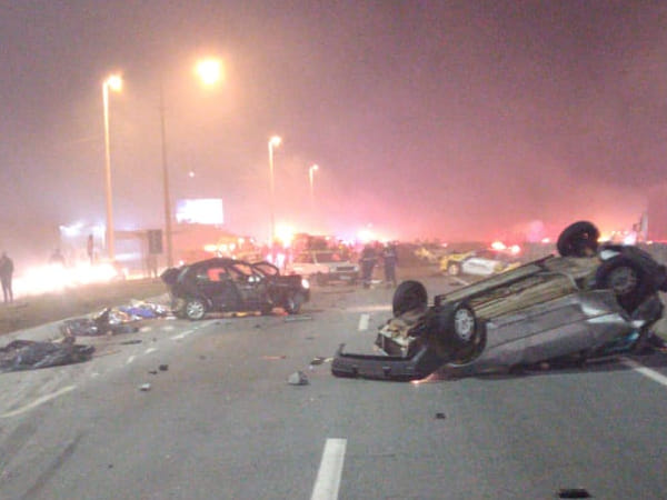 As primeiras informações são de que o primeiro acidente foi entre um motociclista e uma viatura da Polícia Militar, que interditou a pista. Depois houve uma sequência de colisões, quando o motorista de um caminhão, sem enxergar os carros por causa da fumaça, em alta velocidade acabou praticamente passando por cima dos veículos que estavam já parados na pista. Há um ponto de ônibus próximo do local do acidente, onde, segundo testemunhas, havia pedestres.