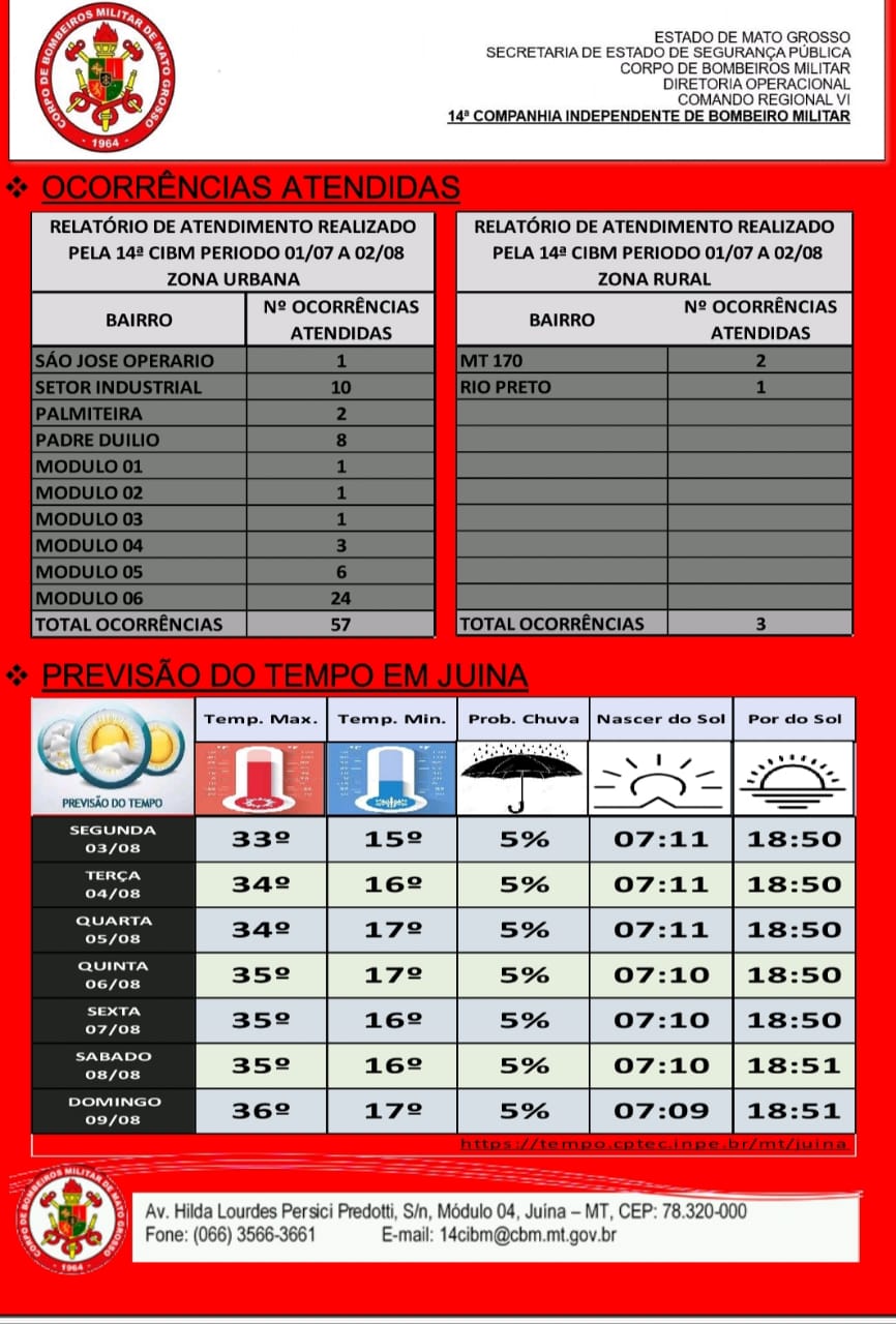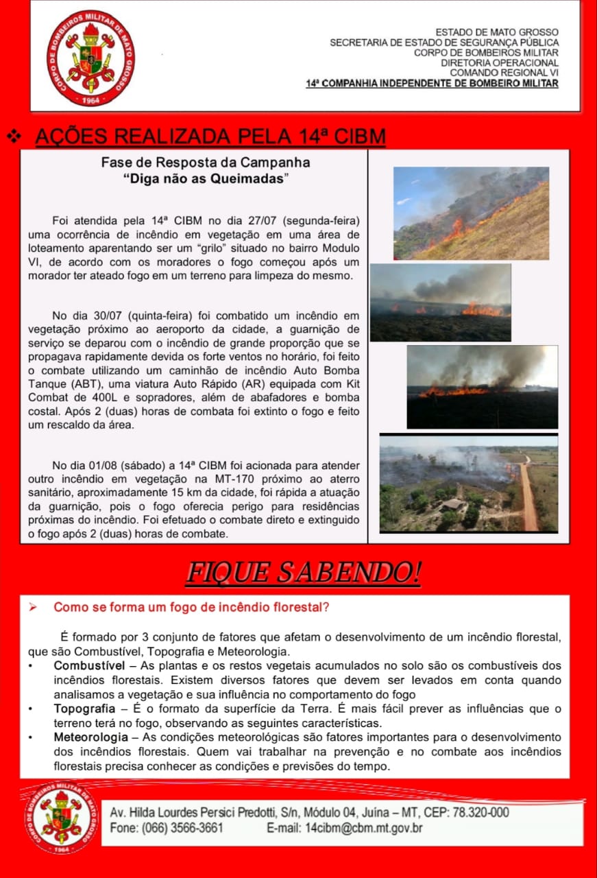 Sempre que necessário acione a 14ª Companhia Independente de Bombeiros Militar de Juína MT via 193.