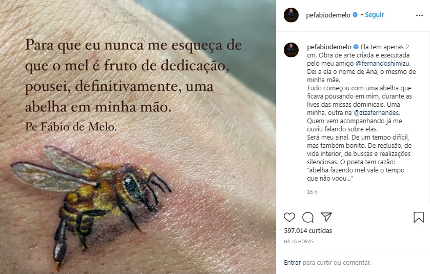 "Se o padre fabio de melo fez uma tatuagem, quem é minha mãe pra falar q eu não posso fazer uma tatuagem", escreveu uma seguidora.