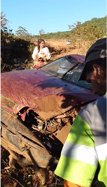 Falei que iria arrumar uma tabua e levar, dai o cara me ensinou os procedimentos de amarrar encimada tabua... dentro do carro não cabia de jeito nenhum, foram elas que tiraram ele do carro. Quando o corpo de bombeiros já tinha motorista um pessoal da construtora que tava num barraco lá perto também todo mundo foi lá ajudar. Ele já tava la no seco, Tava frio de madrugada e ele estava na água! O cidadão tinha comprado uns 15 dias atrás... andou uns 70km e se acabou."