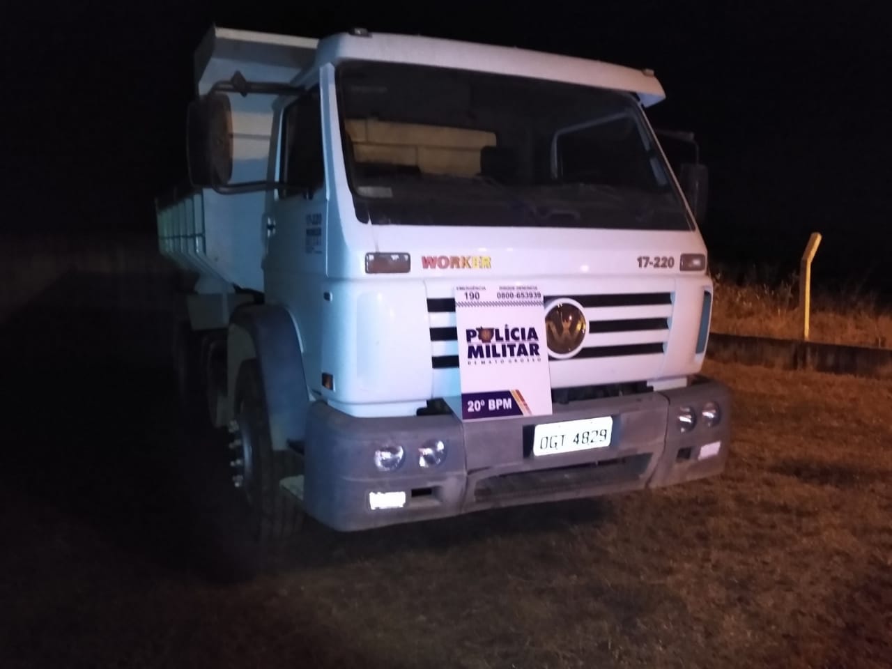 A guarnição policial se deslocou até o referido local e localizou o caminhão, ao ser checado, confirmou ser produto de roubo ocorrido em Cuiabá na data de 06/08/20.