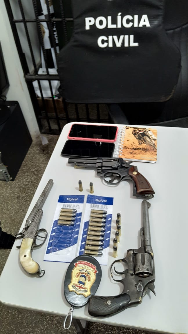 No total quatro pessoas presas em flagrante e três armas de fogo apreendidas sendo dois revólveres calibre 38 e um garrucha, além de elementos de provas para dar continuidade nas investigações.