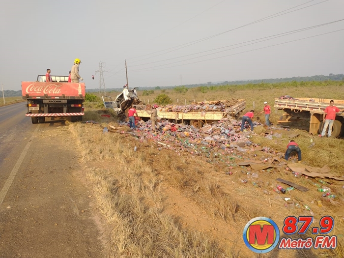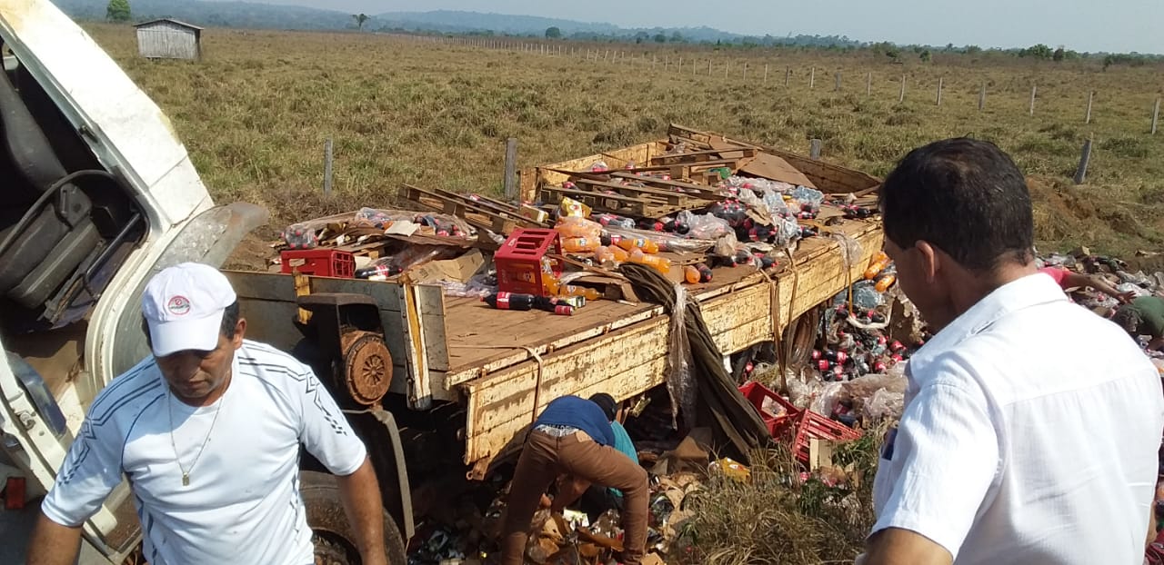 A aproximadamente 30 km de Juína próximo ao rio Juinão um caminhão de uma distribuidora de refrigerantes veio a capotar.