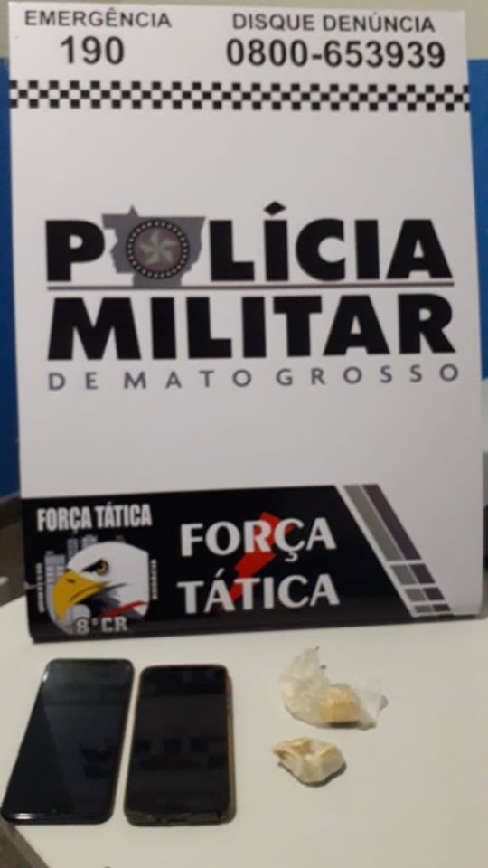 Na terça-feira (26), policiais da Força Tática de Juína estavam realizando patrulhamento quando avistaram um grupo de pessoas agindo de maneira suspeita no bairro Palmiteira, ao realizar abordagem, dois dos suspeitos fugiram em uma motocicleta, os demais indivíduos foram revistados, com um deles havia uma porção grande de substância análoga a pasta base de cocaína, no terreno onde eles estavam também foi encontrado uma porção de droga. Dois suspeitos foram encaminhados para Delegacia de Polícia Civil.