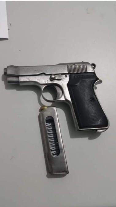 Em busca pessoal realizada em um suspeito, o mesmo se encontrava portando uma pistola inox marca Bereta calibre 7,65 e uma munição calibre 32 intacta. Constando que o suspeito não possui porte de arma, os policiais deram voz de prisão ao infrator, que foi conduzido à Delegacia de Polícia Civil, onde foi confeccionado o boletim de ocorrência. O Suspeito irá responder por porte ilegal de arma.