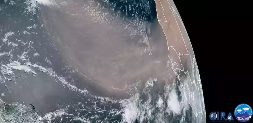 A Administração Nacional Oceânica e Atmosférica dos Estados Unidos estima que a nuvem avançará pelo Caribe e chegará ao norte da América do Sul, à América Central e aos Estados Unidos.