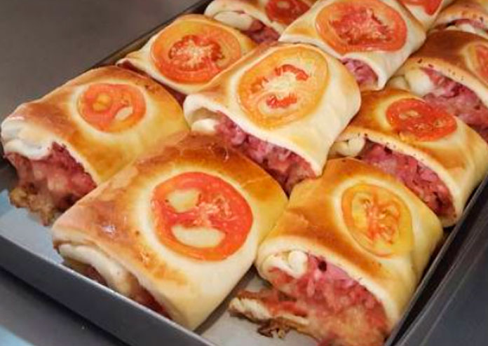 Recheie, feche, pincele com gema de ovo batida e asse.
