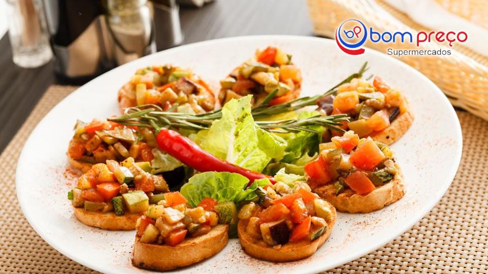 - Reúna os ingredientes da brusqueta;