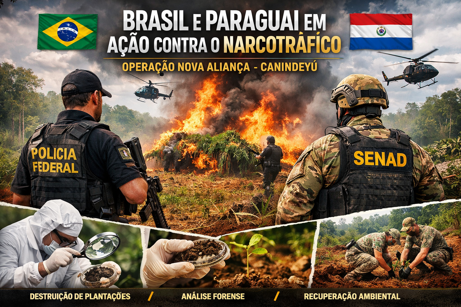 O foco das equipes está concentrado no departamento de Canindeyú, área estratégica para o cultivo e armazenamento de grandes quantidades de droga destinadas ao mercado sul-americano.