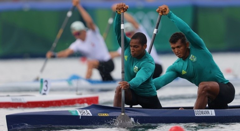 Isaquias Queiroz e Jacky Godmann estão nas semifinais da categoria C2 1000 m em Tóquio 2020. Os canoístas brasileiros dominaram a primeira bateria das quartas de final nesta segunda-feira (2) e estão garantidos na próxima fase, marcada para a noite de hoje (horário de Brasília).